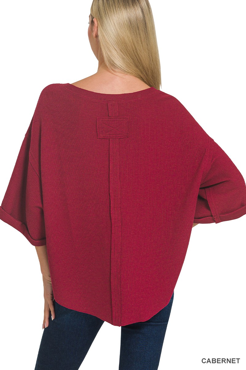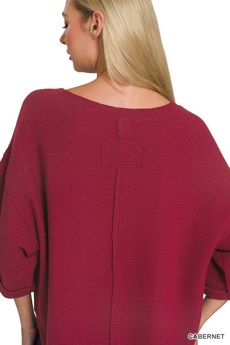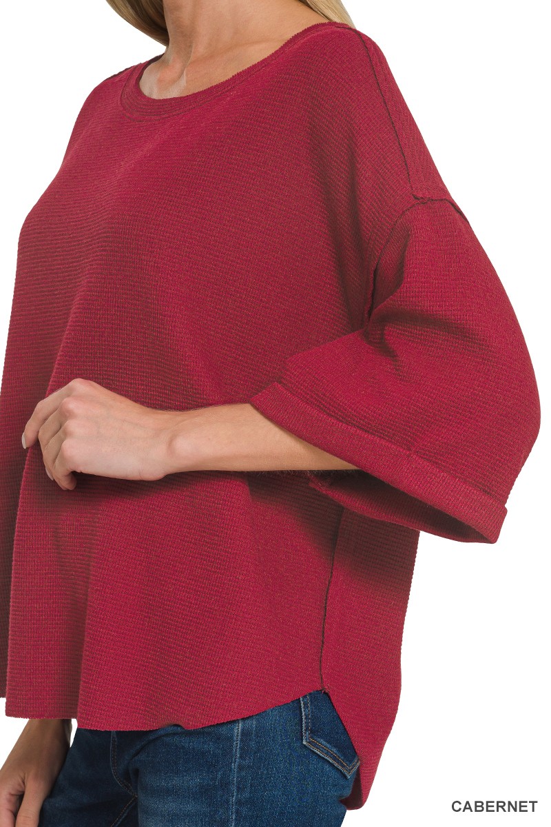 Zenana Double Knit Exposed Seam Curved Hem Top