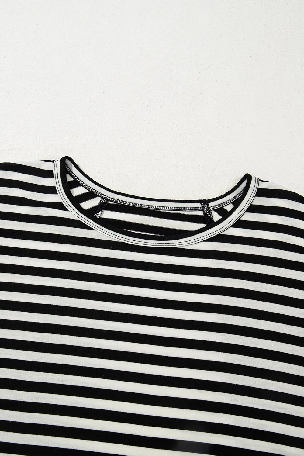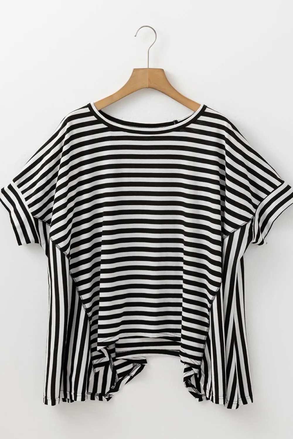Stripe Batwing Sleeve Round Neck Oversized Top