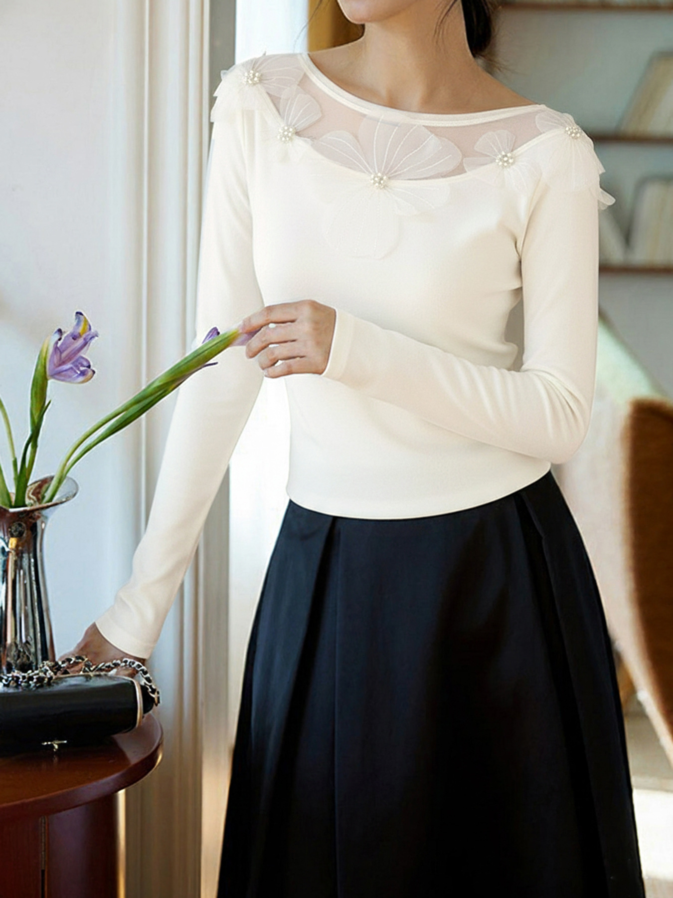 Floral Applique Long Sleeve T-Shirt