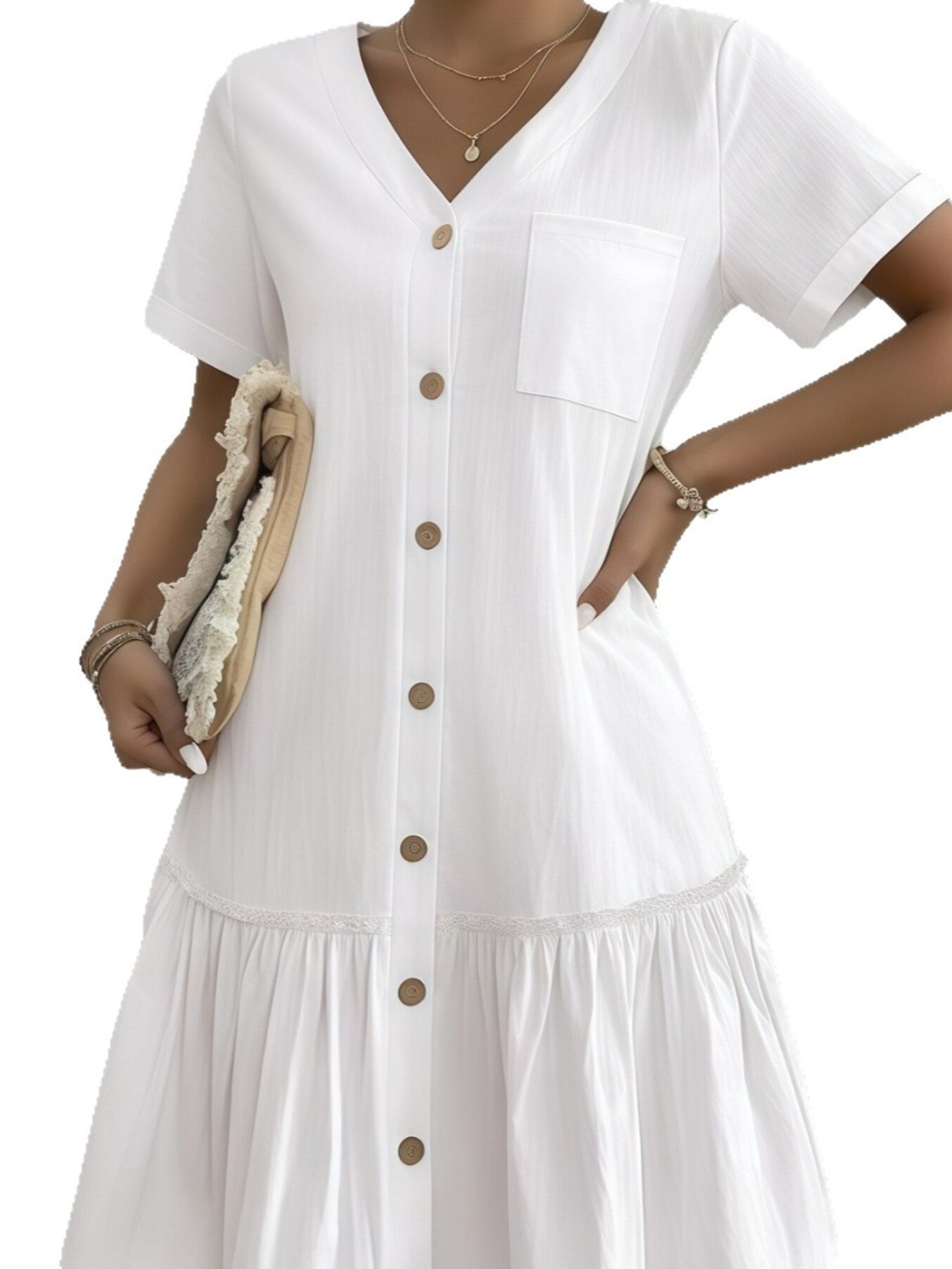 Full Size Button-Front Short Sleeve Tiered Dress Plus Size