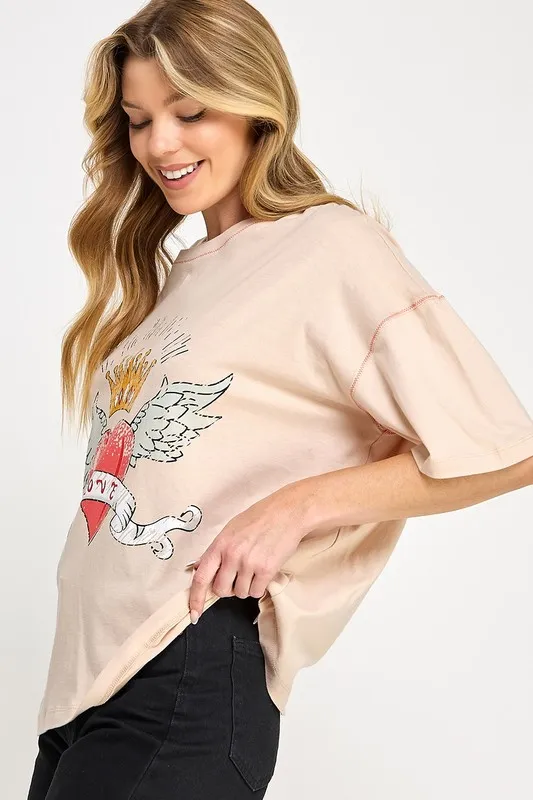 Sage+Fig Love-Inpired Graphic Oversized T-Shirt