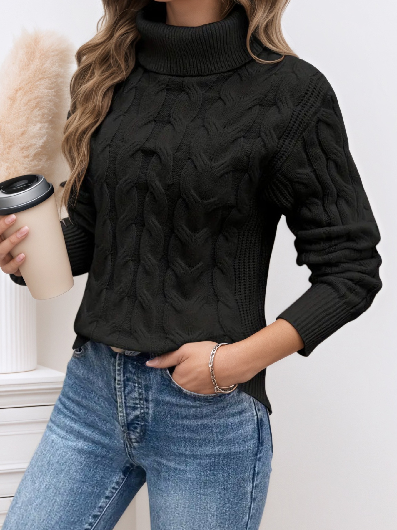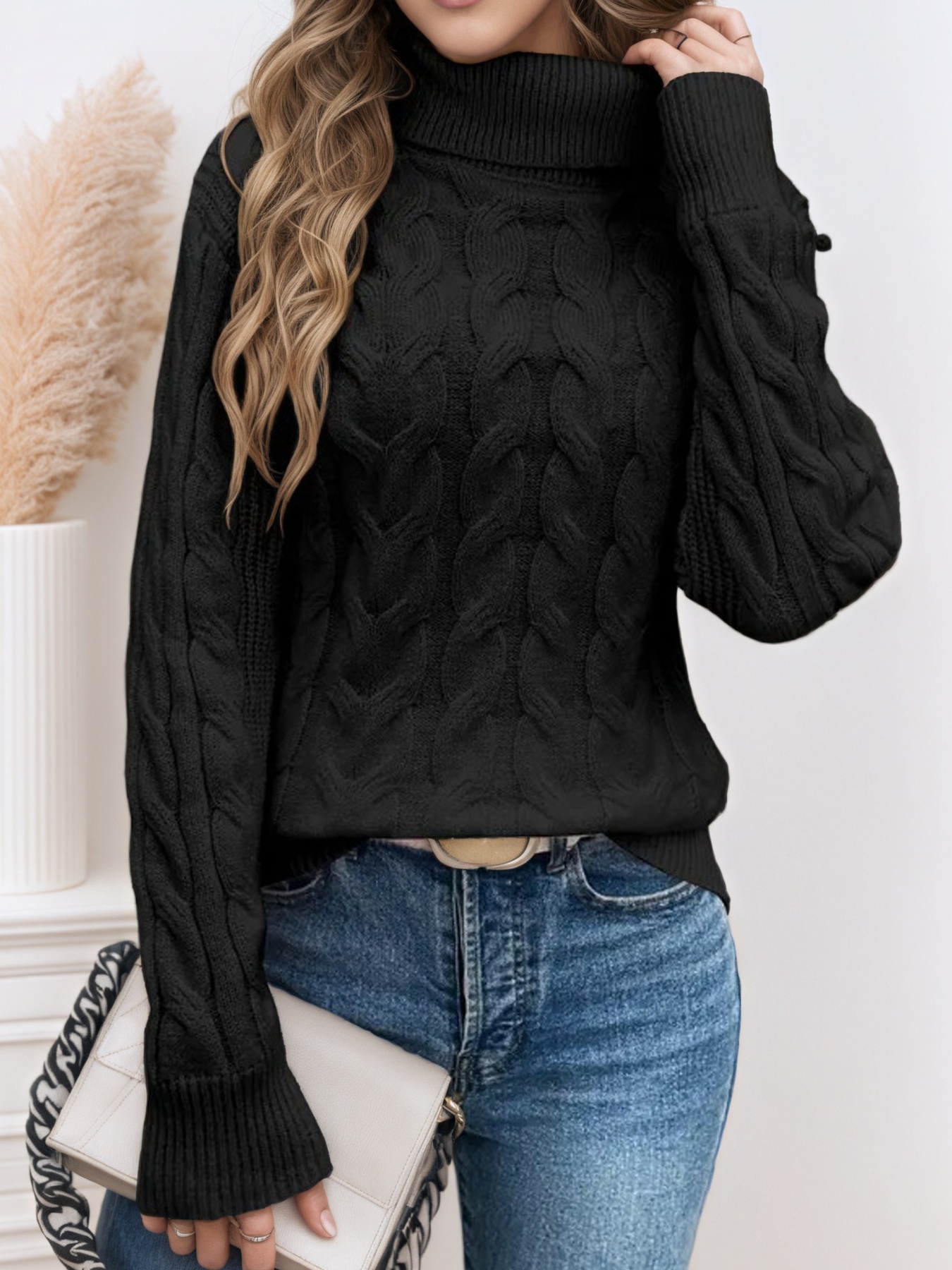 Cable Knit Turtleneck Long Sleeve Sweater