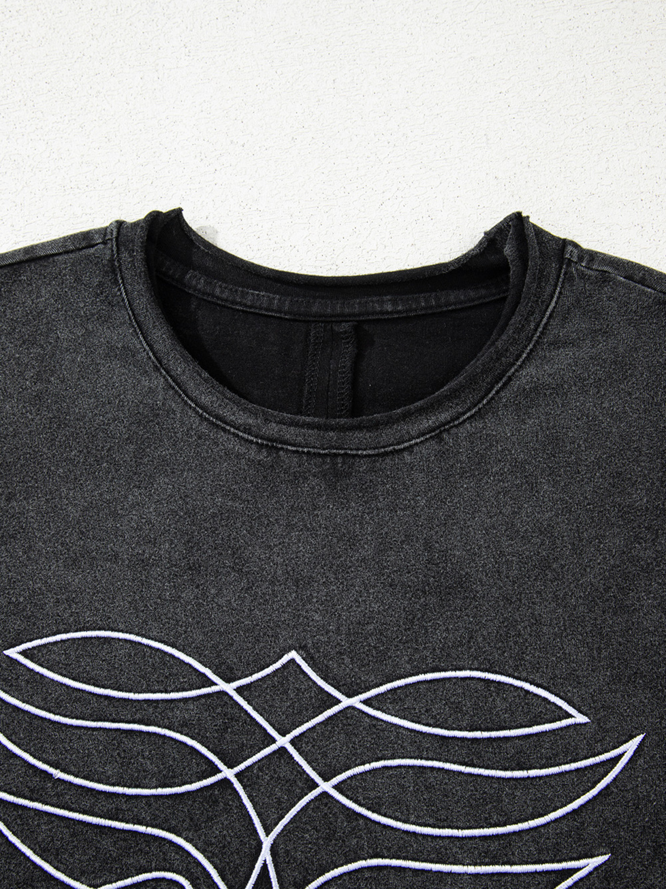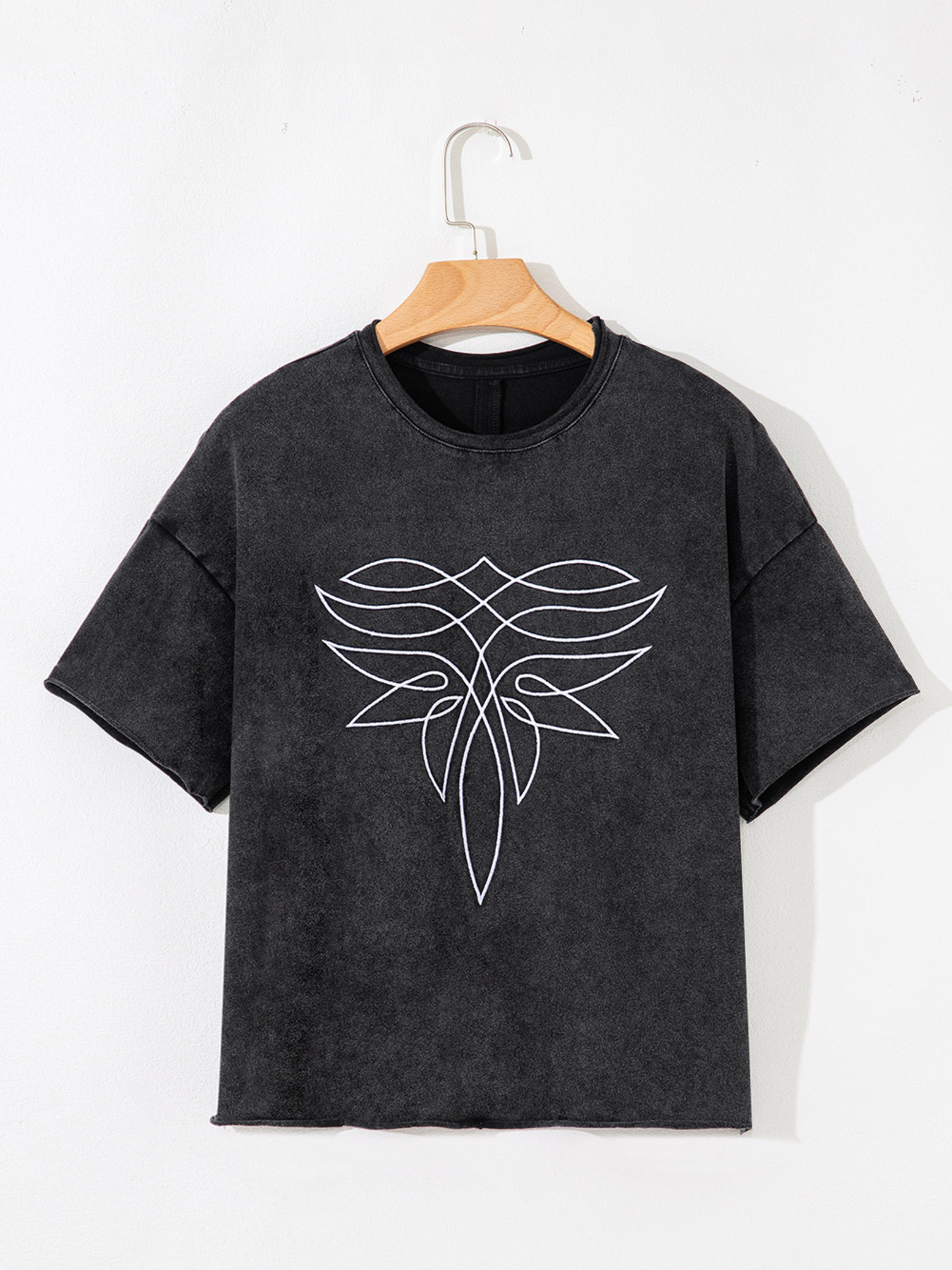 Floral Embroidered Mineral Wash Crew Neck T Shirt