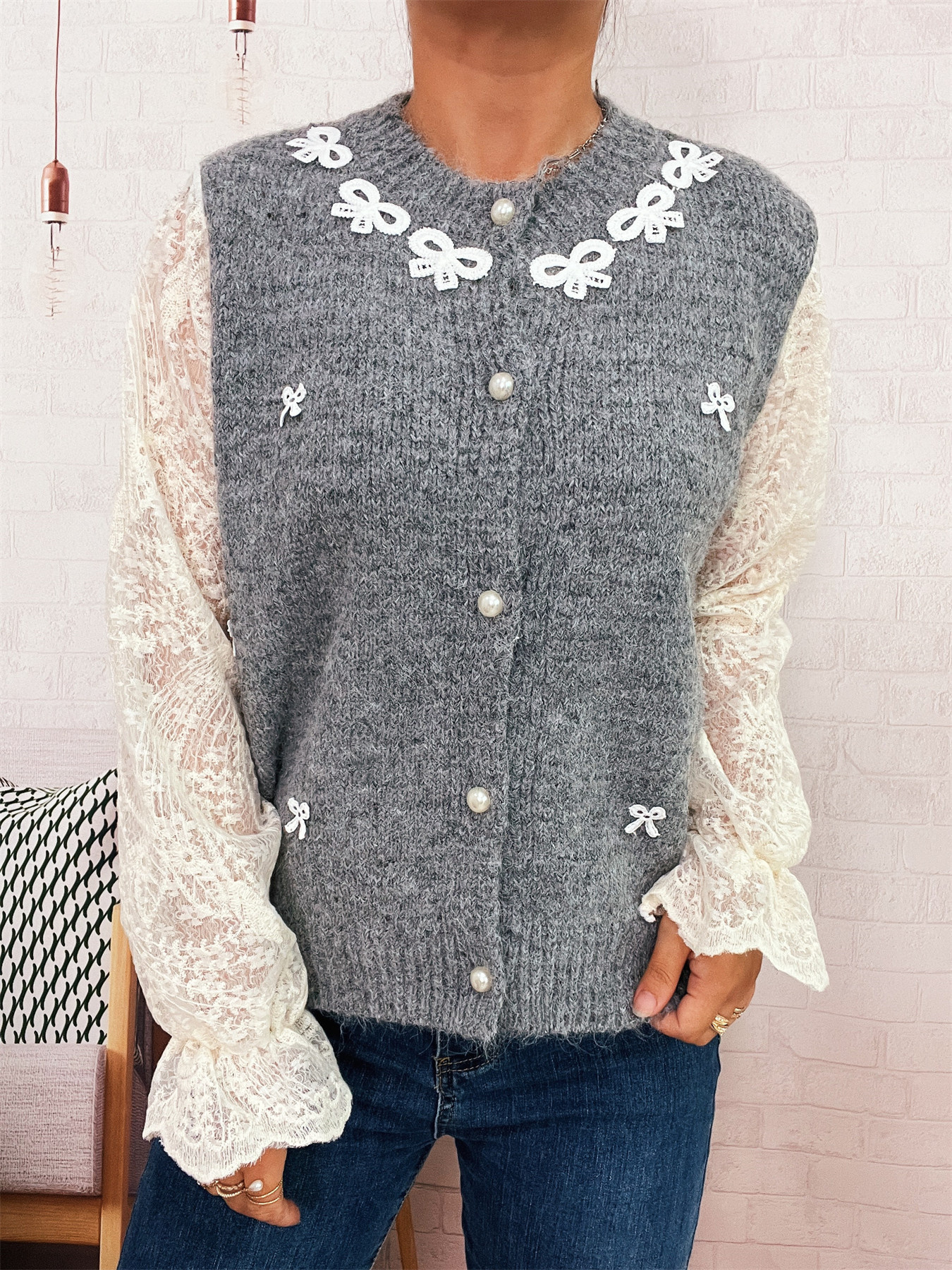 Lace Sleeve Button-Up Cardigan