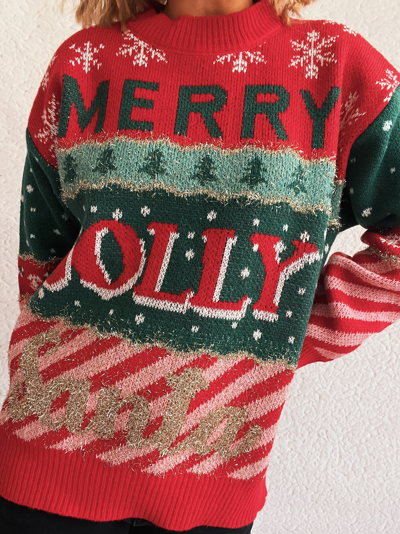 Christmas Letter Round Neck Long Sleeve Sweater