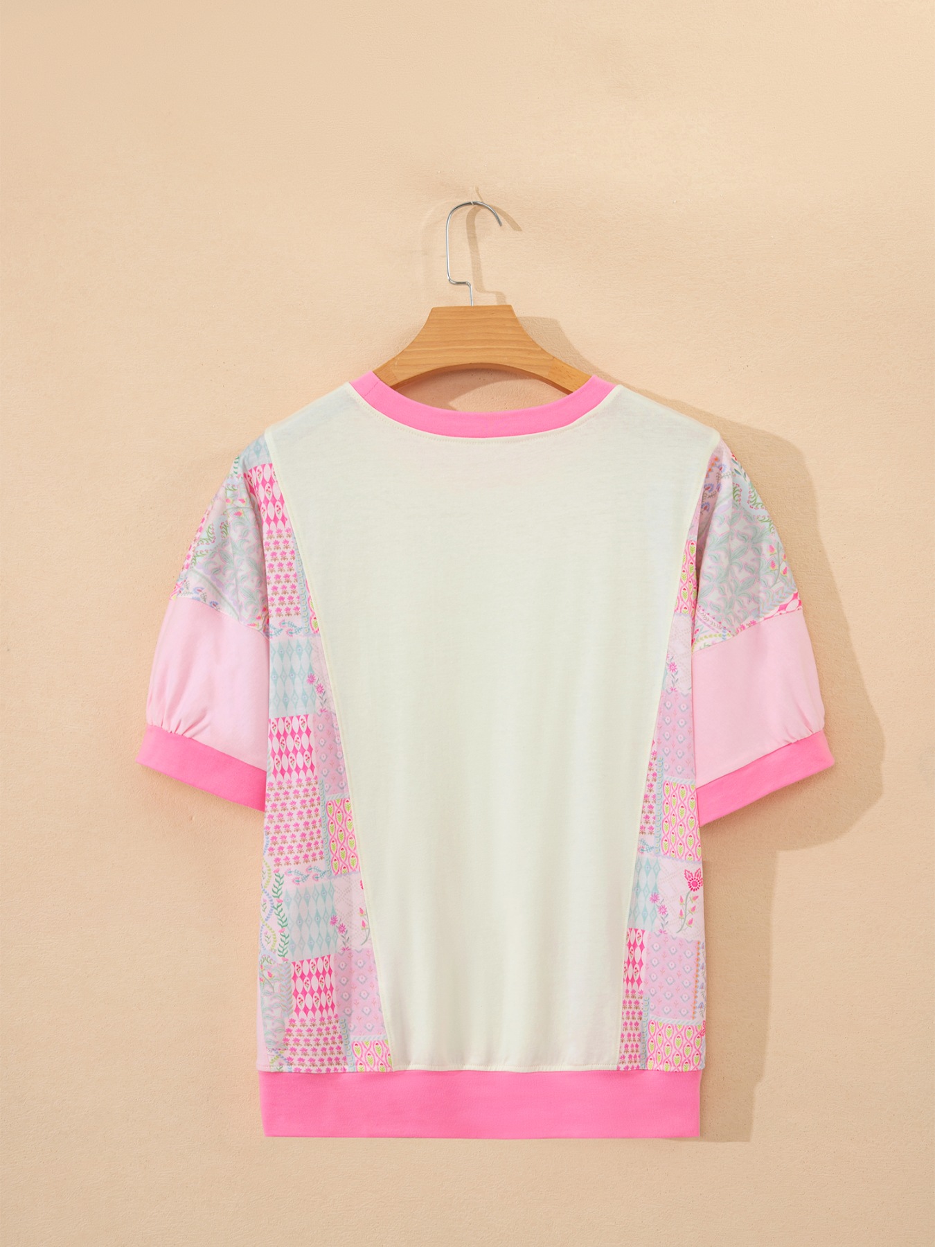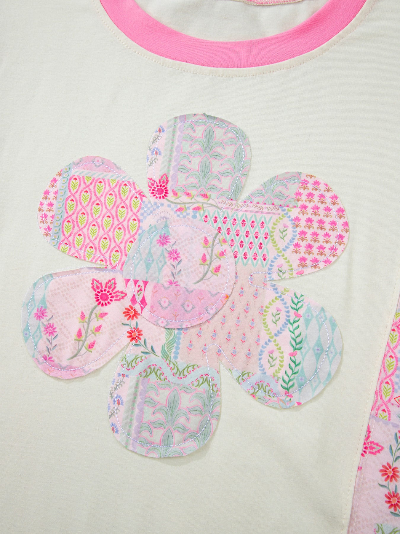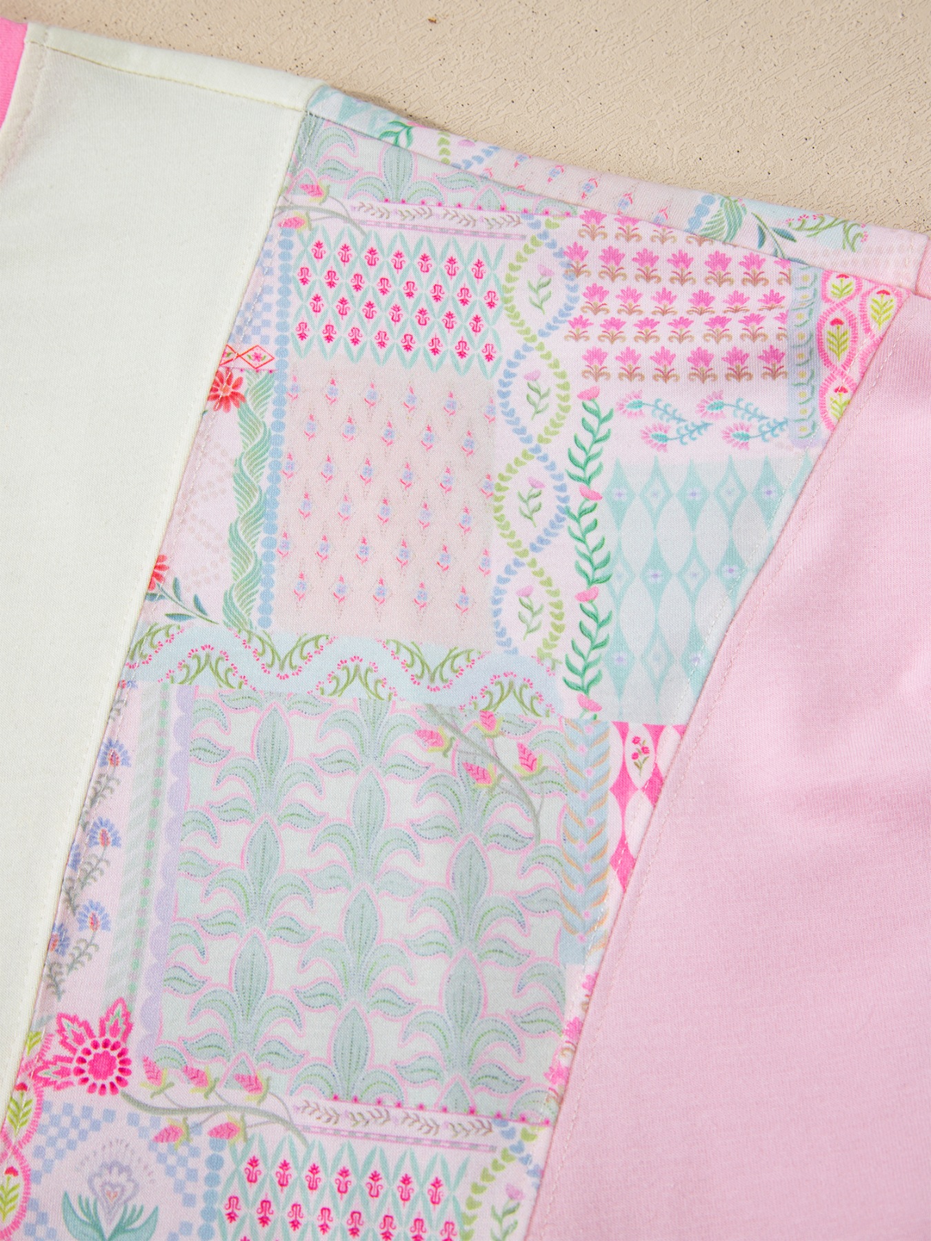 Color Block Floral Patchwork Big Flower Accent Relaxed Top