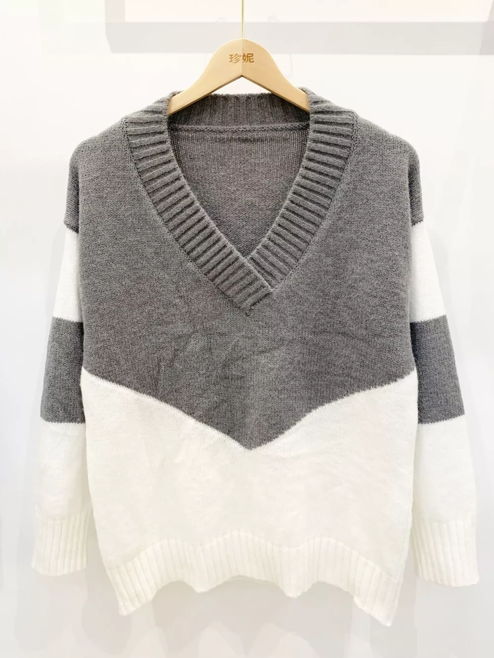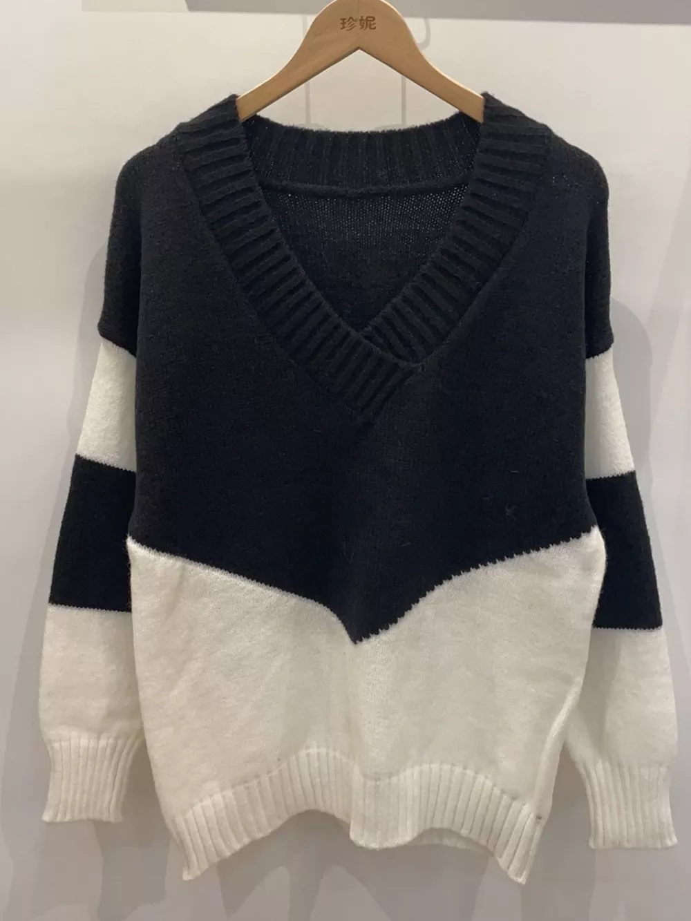 Color Block V-Neck Knit Sweater