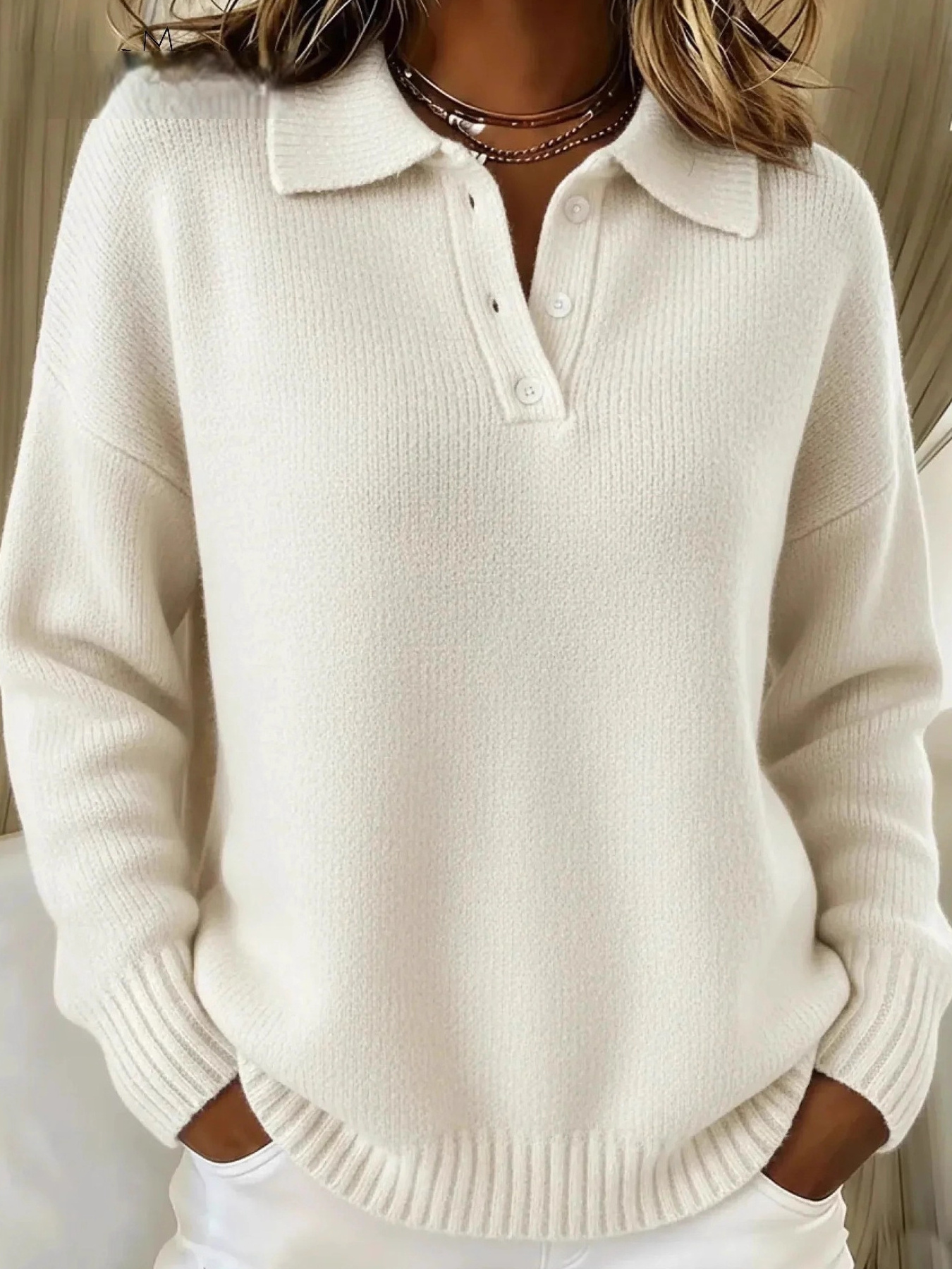 Full Size Half Button Collar Drop Shoulder Sweater Plus Size