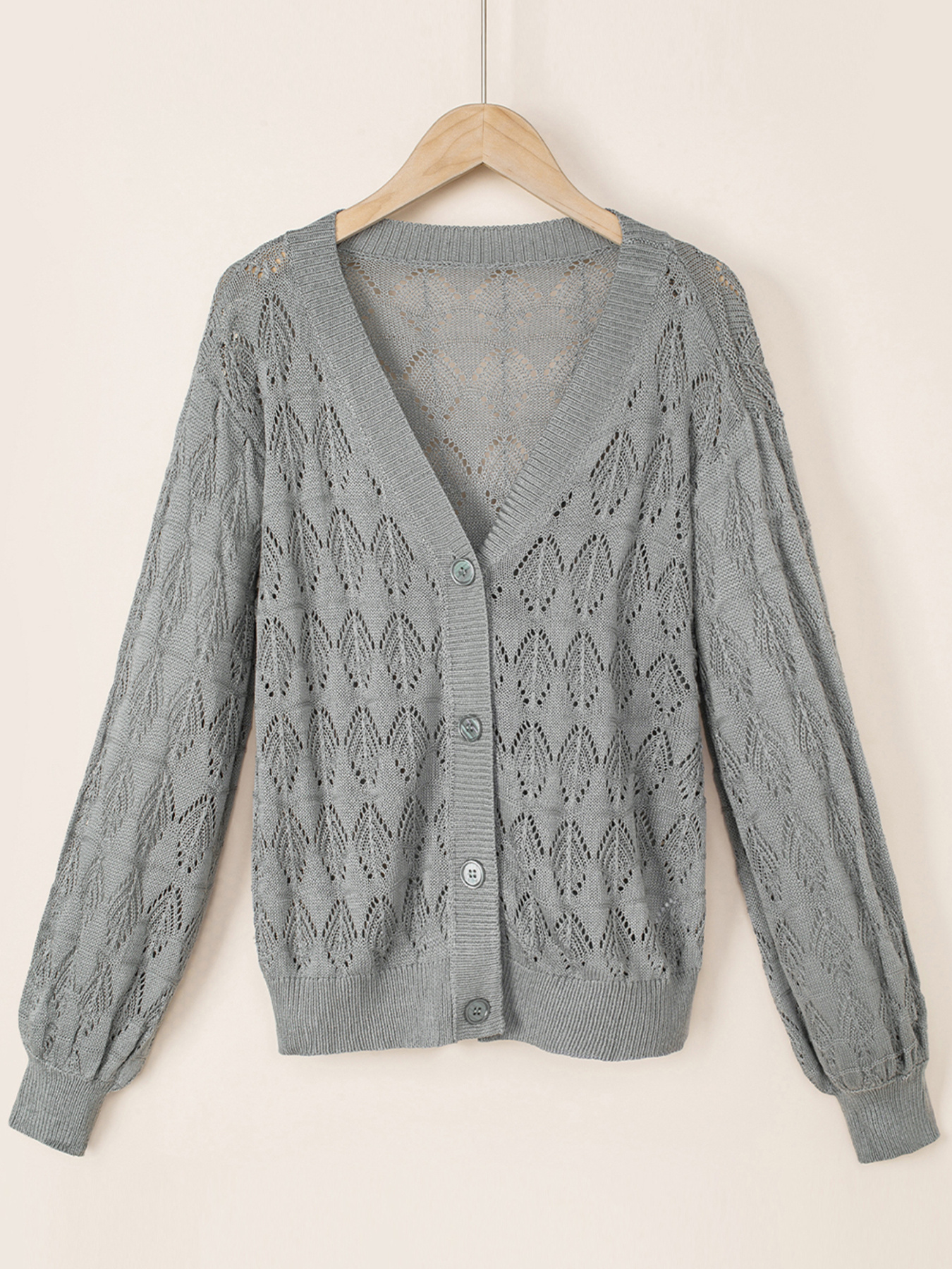 Buttoned Front Openwork Cardigan