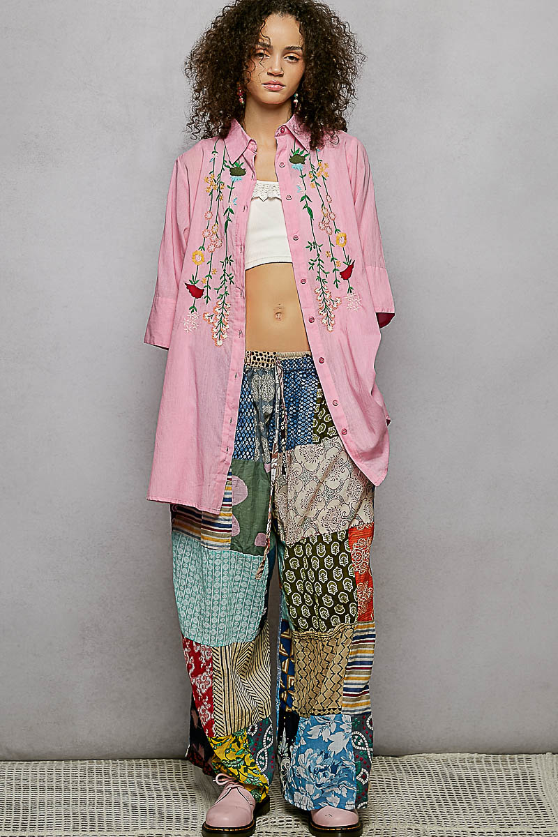 Pol Floral Embroidered Half Sleeve Cotton Shirt