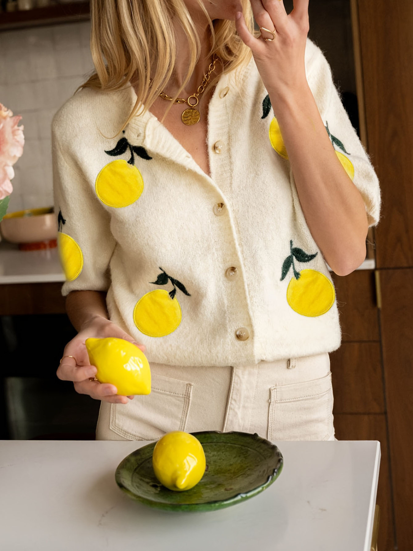 Lemon Button-Up Short Sleeve Cardigan