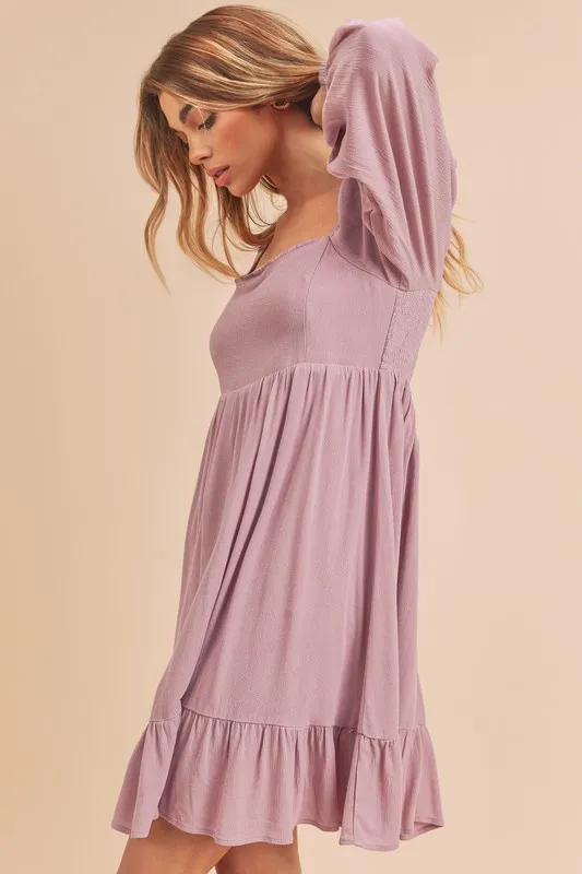 Aemi + Co Ruffled Hem Square Neck Balloon Sleeve Mini Dress