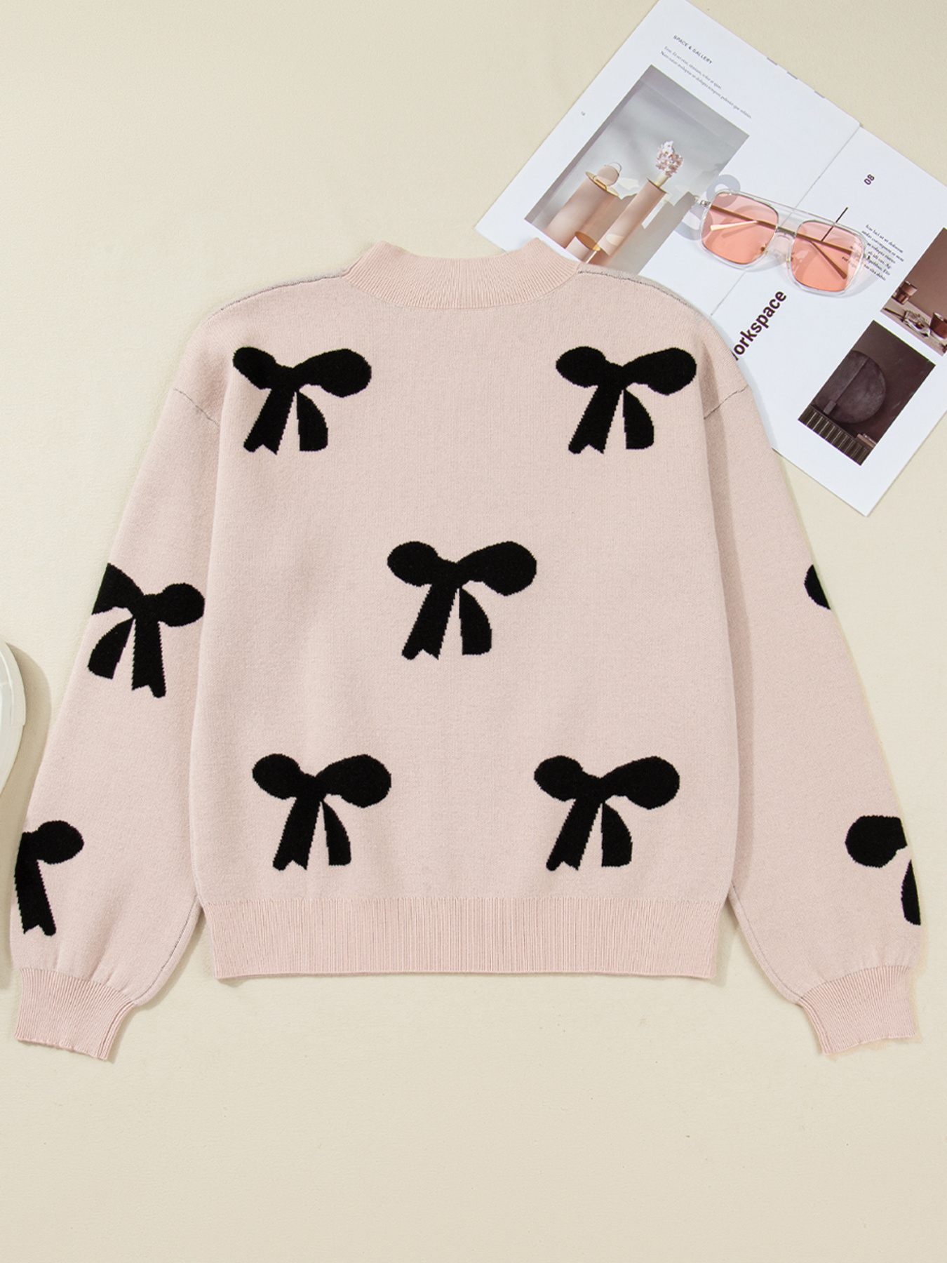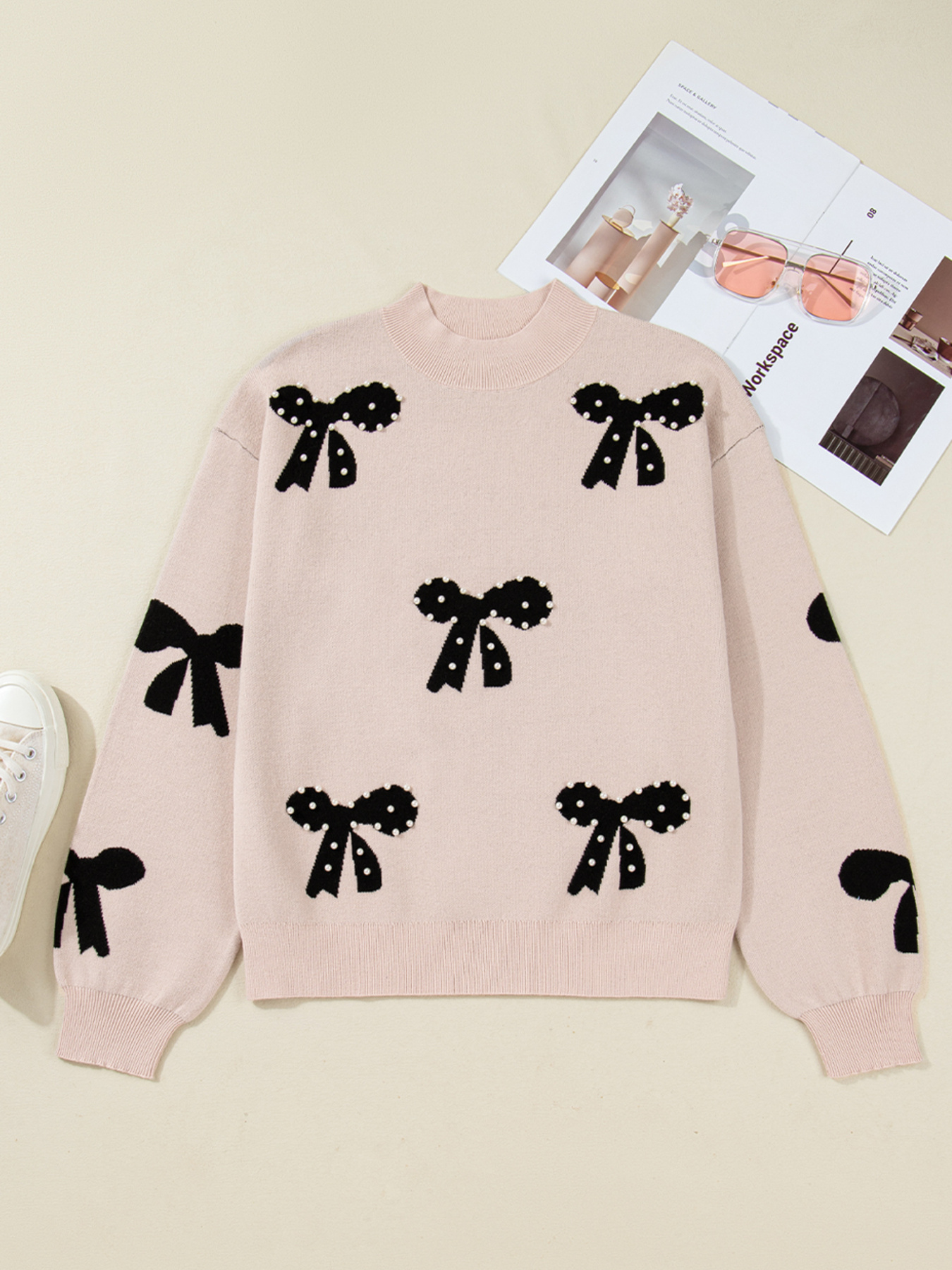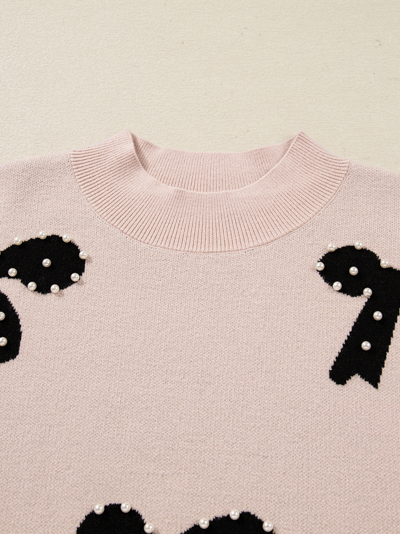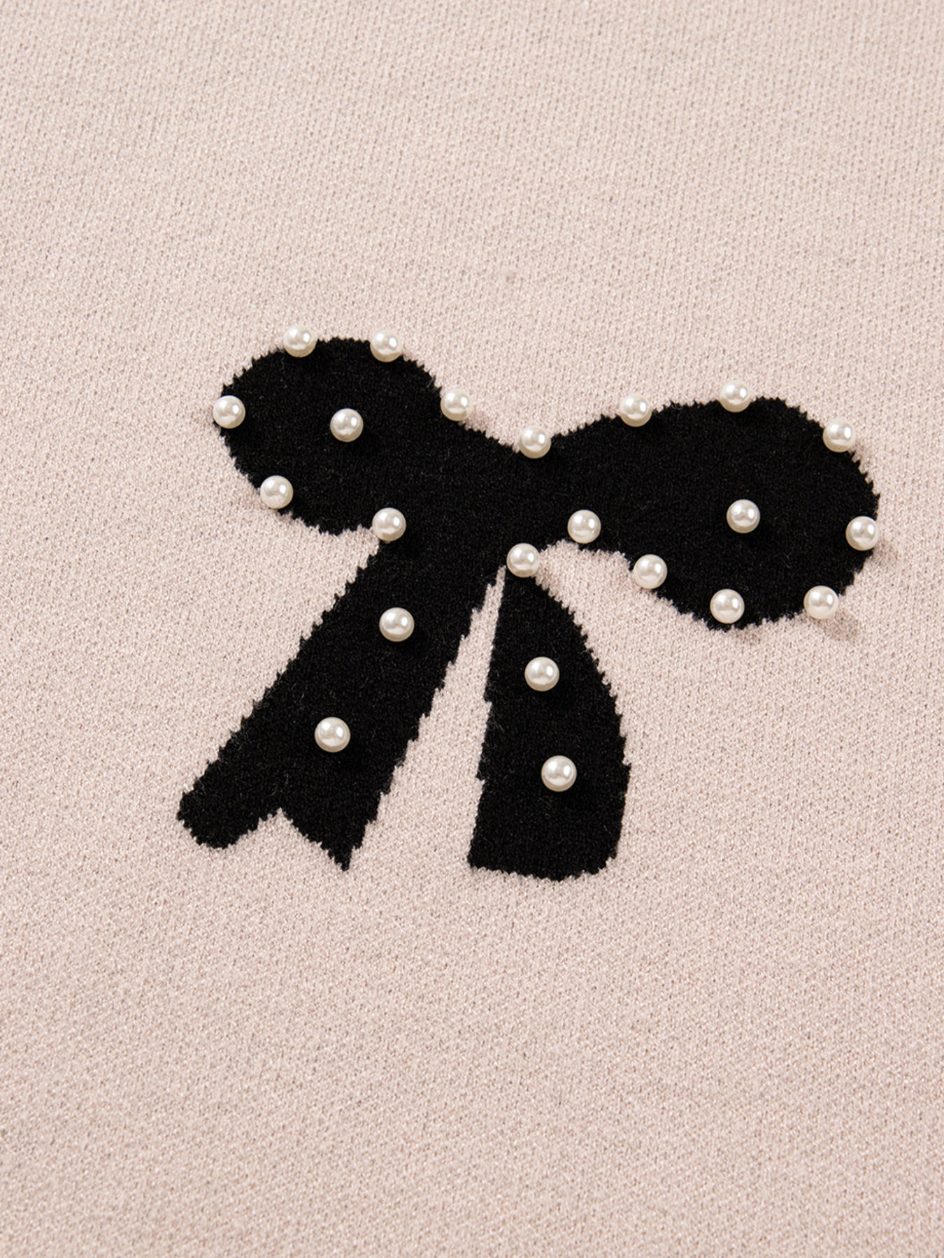 Pearl Embellished Bow Pattern Loose Sweater