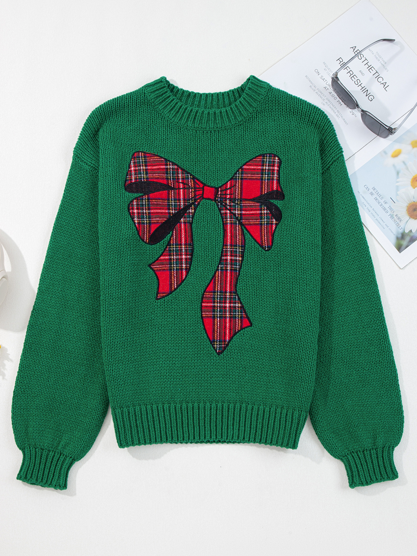 Plaid Bow Graphic Christmas Sweater