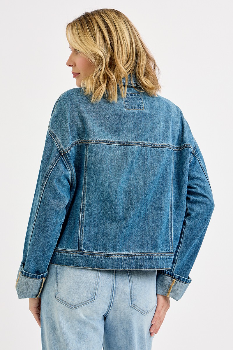 Risen Oversized Cargo Pocket Denim Jacket With Cuffed Sleeves