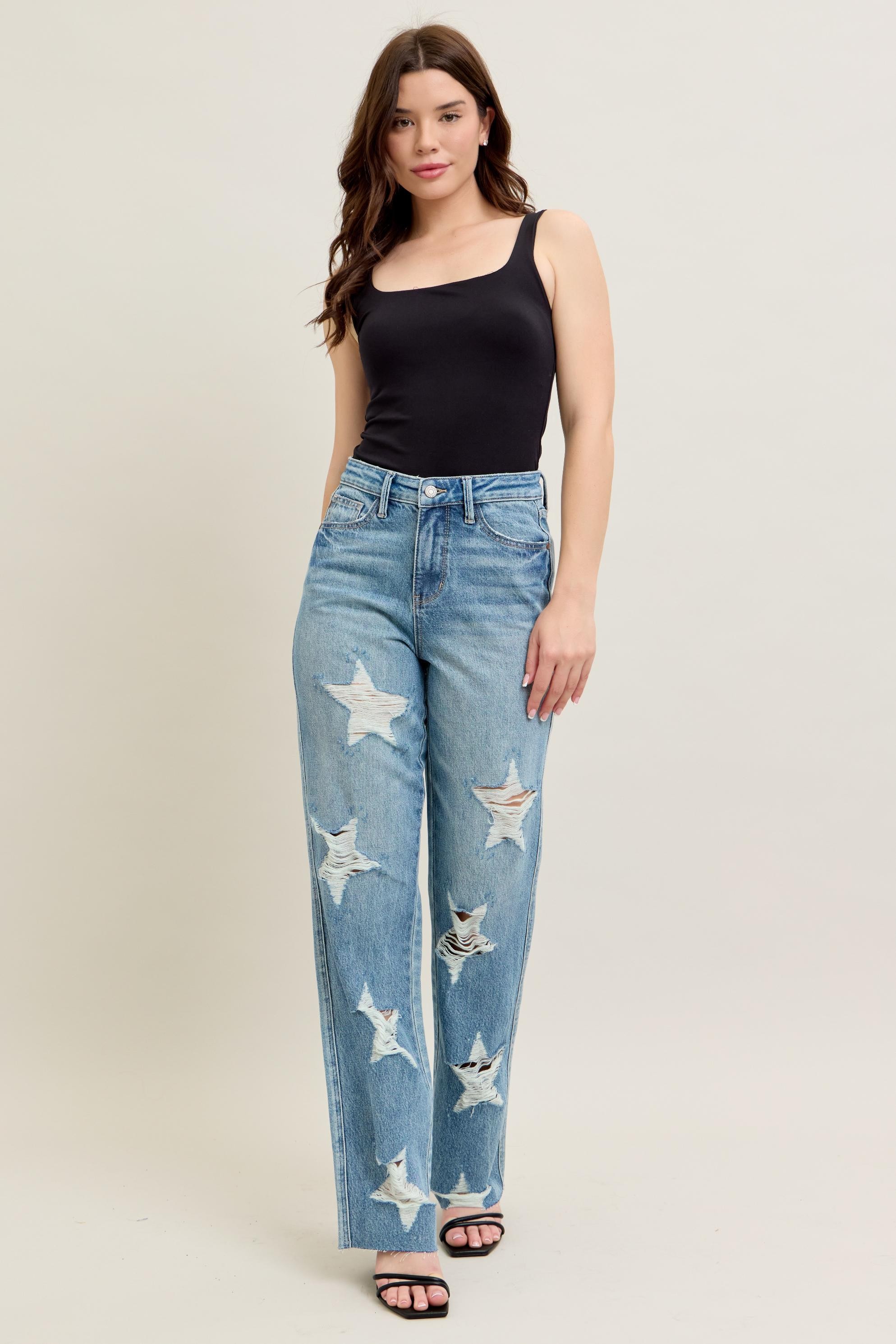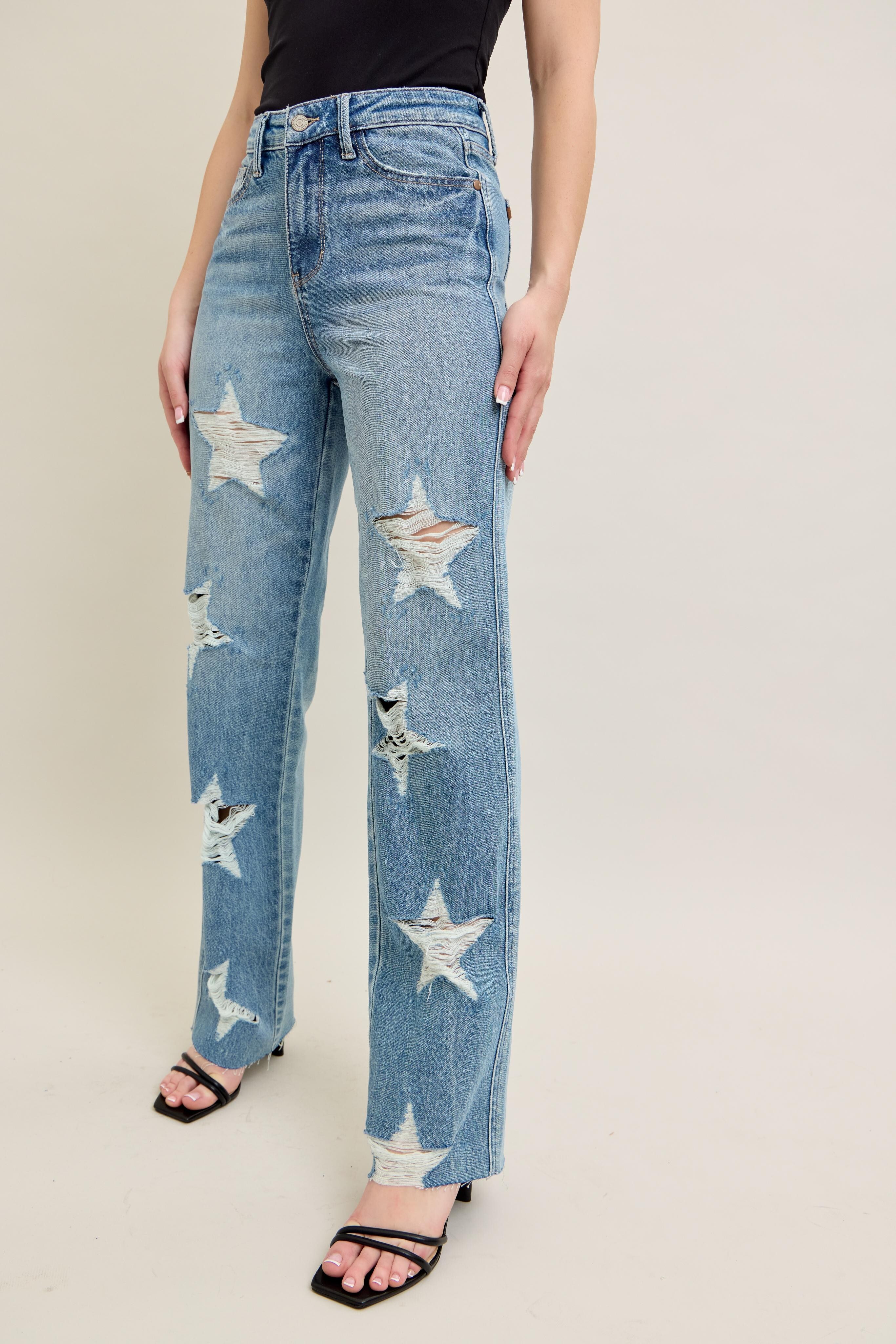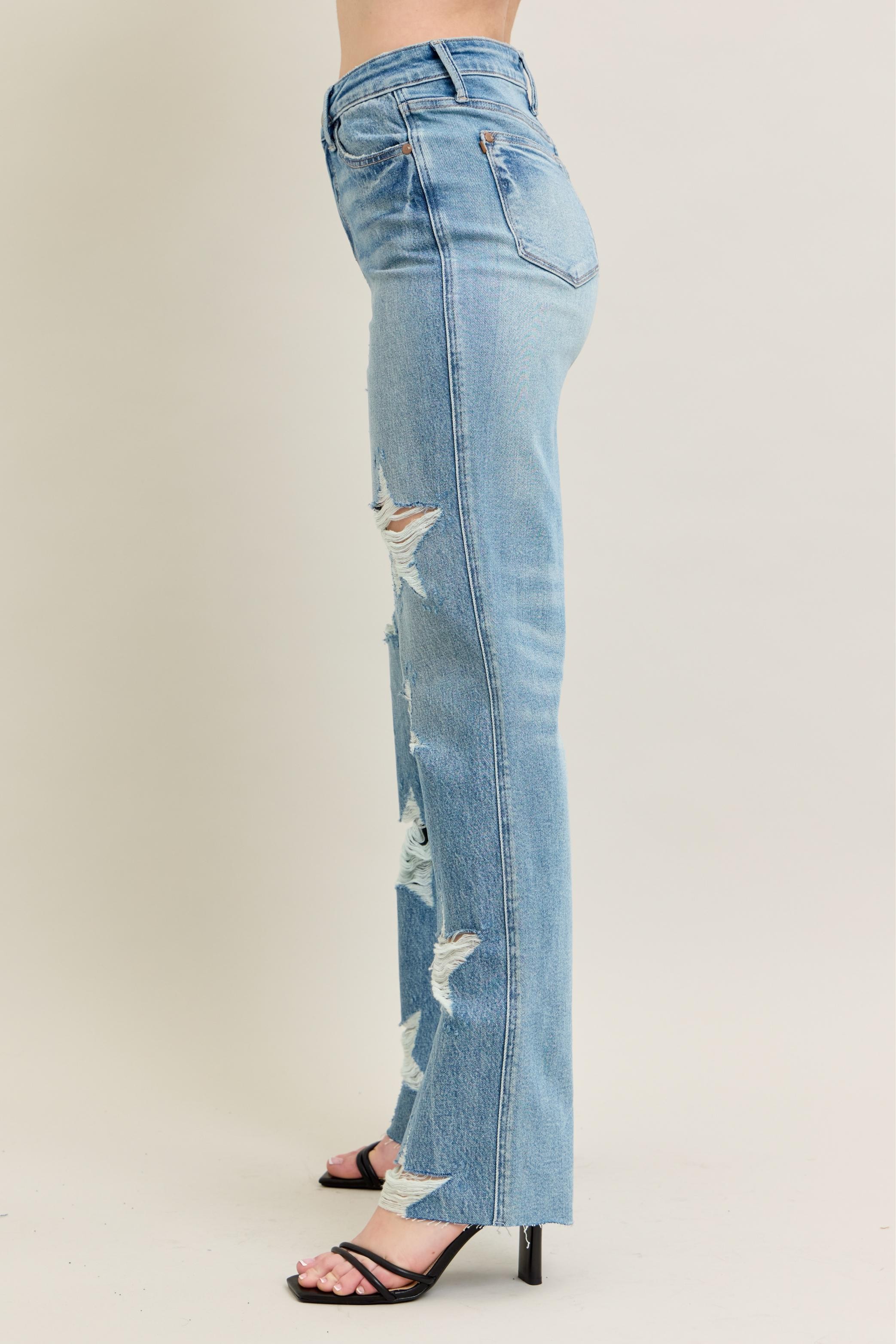 Judy Blue Full Size High Waist Rigid Magic Star Shaped Destroy 90'S Straight Jeans Plus Size